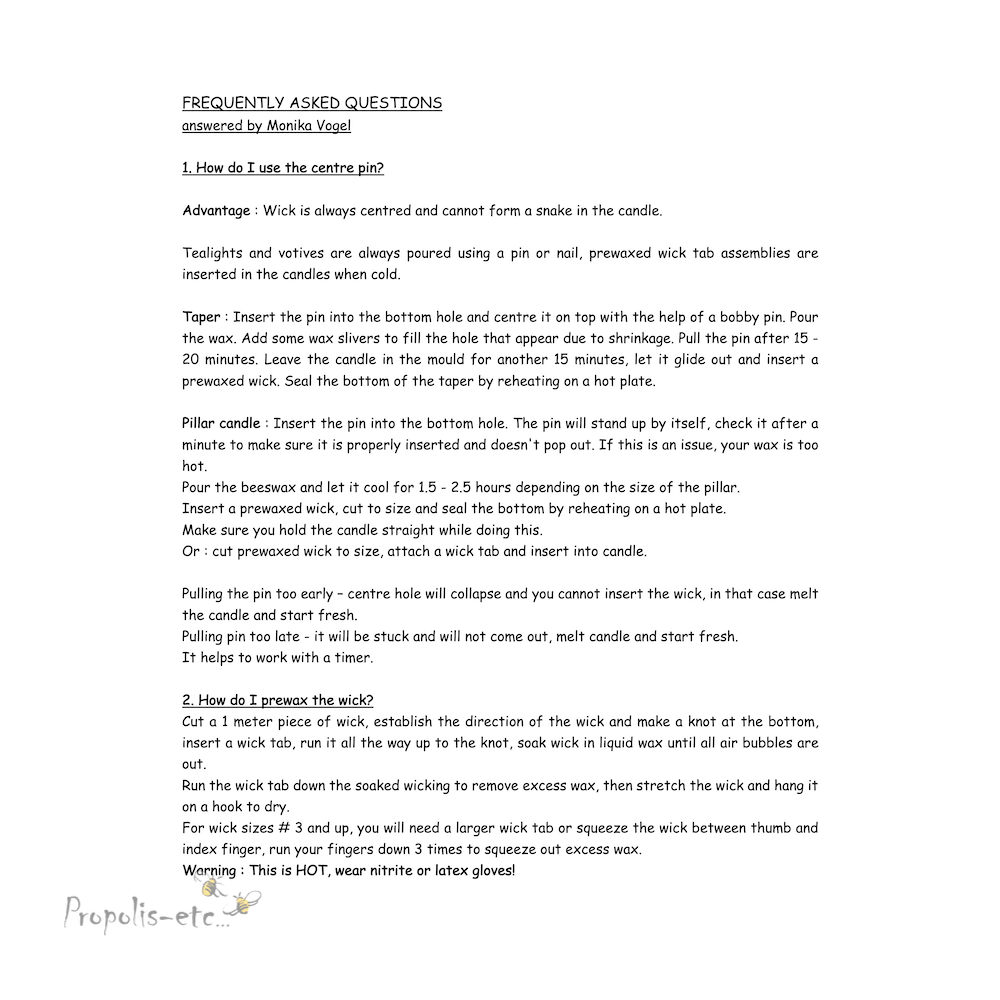 Candle Making - Beeswax Facts - Candle Flame Facts - Candle Facts - Candle Making Instructions - Mould Making Instructions - Wax Refining Instructions - Equipment - Shop Layout